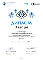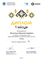 Дипломом за 1 місце серед дев'ятикласників нагороджено Василишин Вероніку, за 3 місце в категорії 11 клас - Свистун Наталію. Сертифікат за успішне проходження всіх етапів одержала Макарусь Діна, учениця 9 класу.